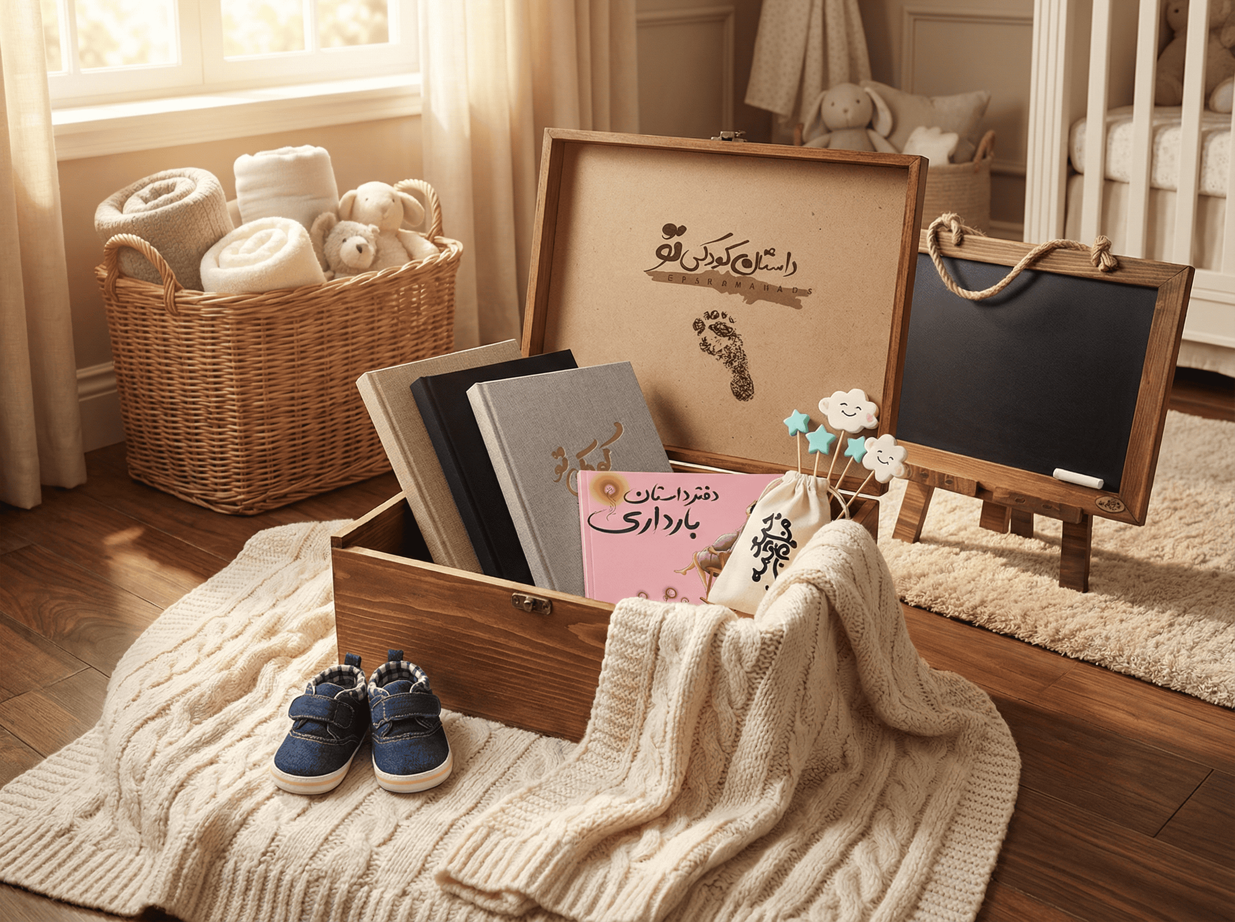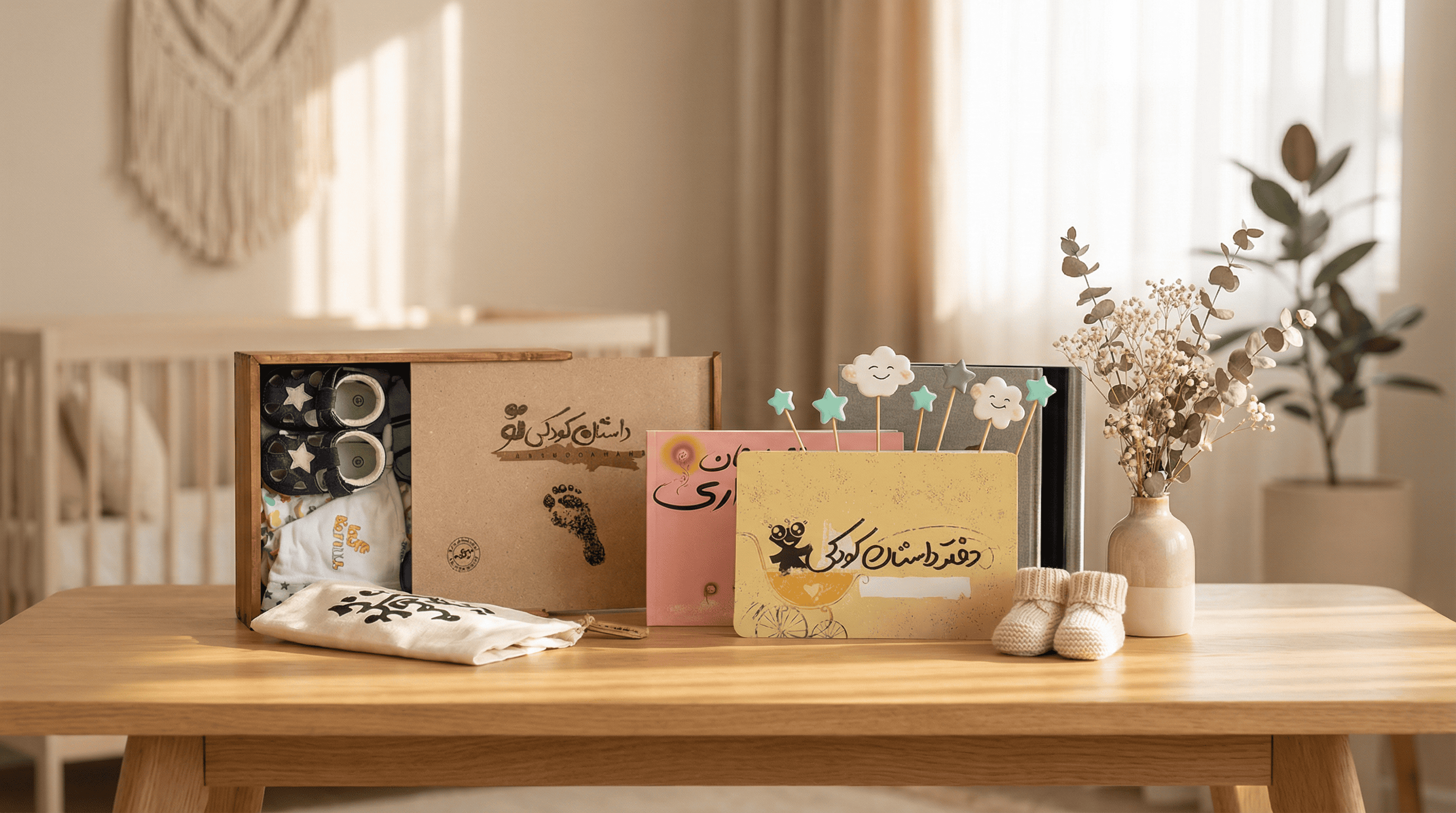 - چرا این هدیه؟ با این مجموعه، مسیر ثبت خاطرات قطع نمیشود. دفتر داستان کودکی، اتفاقات مهم تا ۵ سالگی را پوشش میدهد و آلبوم، فضایی امن برای عکسهای چاپی فراهم میکند. این یک پکیج کامل برای مادری است که دوست دارد جزئیات را نگه دارد.