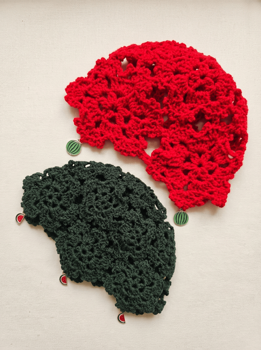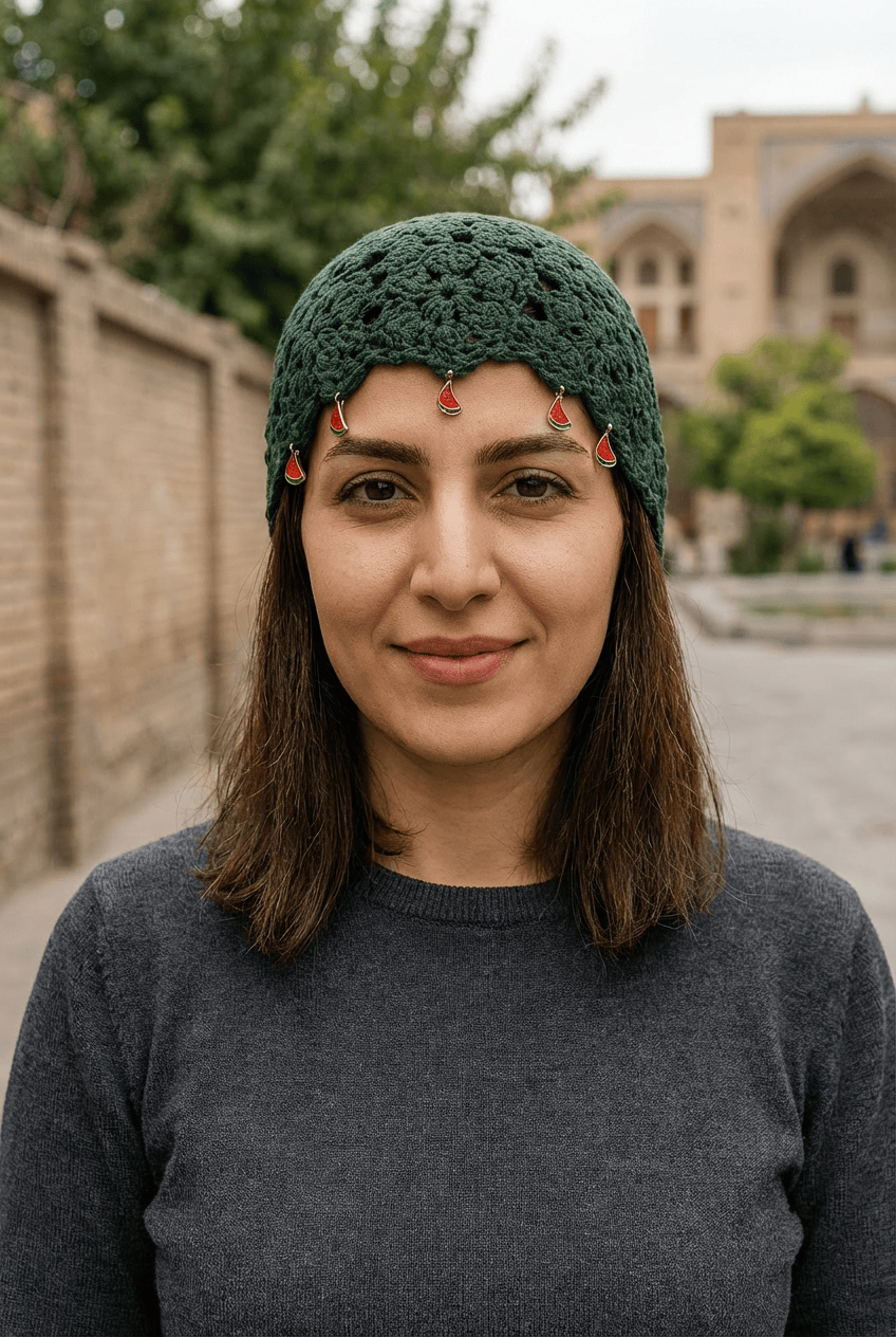 وجود آویزهای یلدایی (هندونه یا انار) حالوهوای جذابی به کلاه داده و آن را به یک اکسسوری خاص برای شب یلدا و عکسهای یادگاری تبدیل کرده است. اگر شال گردن یا شال قلاببافی دارید، این کلاه بهترین گزینه برای کامل کردن ست پاییزی–زمستانی شماست. سبک است، گرمِ ملایم است، و بهراحتی با اکثر لباسها ست میشود.